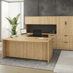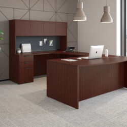 Transitional desks are very common in the workspace. We define the transitional desk as being a neutral to modern desk that can typically go with the flow of almost any office. It will usually be a desk with some design, but not too modern, and not too classic or traditional. Many transitional office desks come in cherry, mahogany, or espresso. When researching which office furniture to buy, a transitional office design is typically one of the most affordable. What you may lose in design, you will not lose in functionality. If looking for an affordable office furniture solution, in a functional quality desk, OFS has many options for you to choose from.